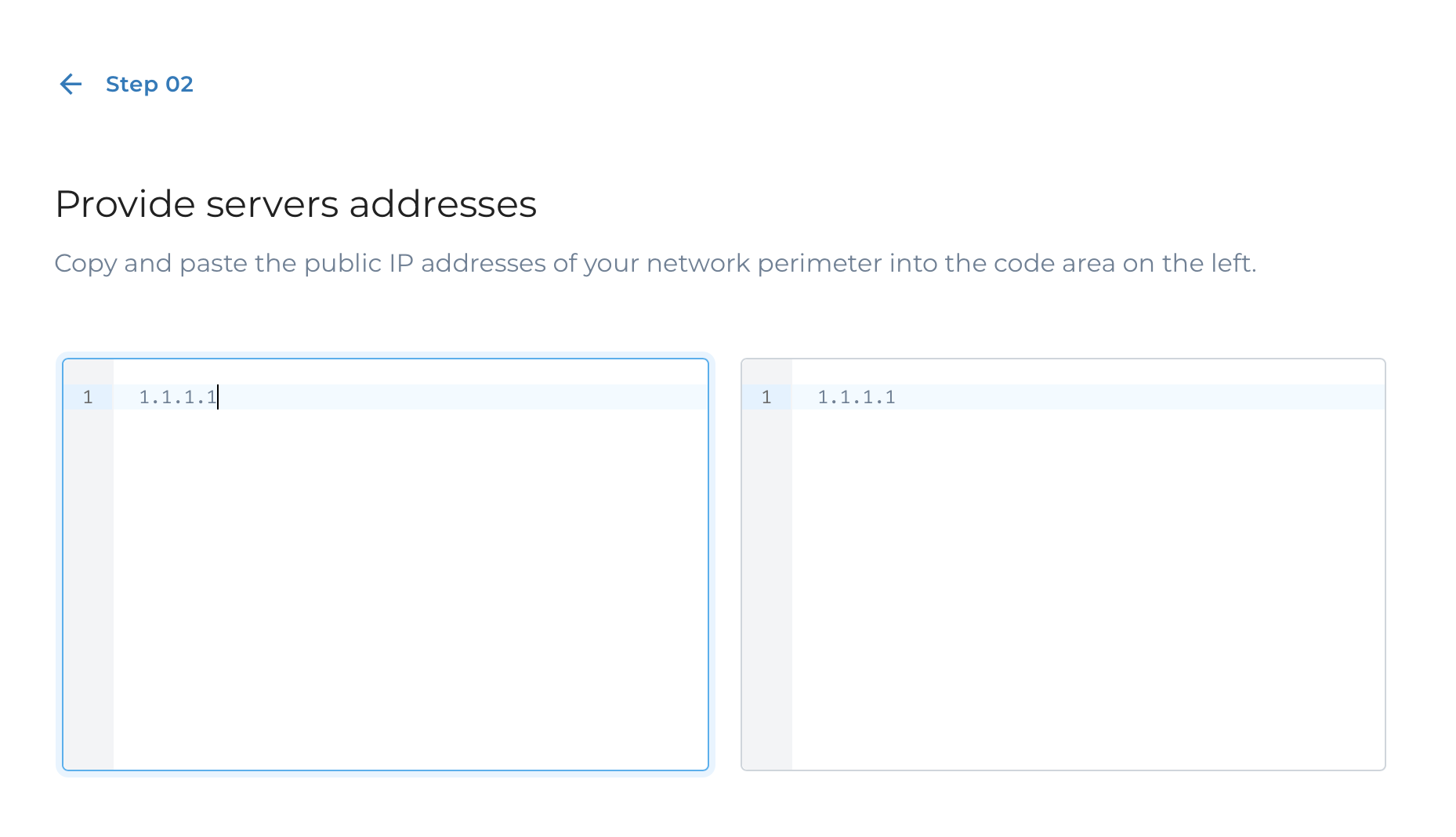 Here, you need to enter the IP addresses of your network's edge servers. You can add up to 16 IP addresses per deployment. These will usually be the public IP addresses of your router or firewall. Check out the 'Perimeter' section of our FAQ for more information.